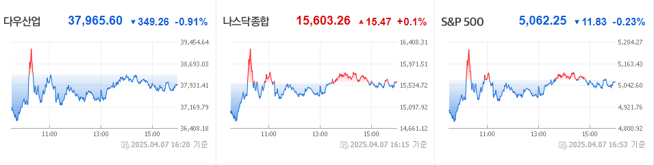 2025년 4월 7일 뉴욕 증시는 트럼프의 관세 정책 발표와 중국의 보복 관세로 인한 충격으로 주요 지수가 동반 하락했습니다.
