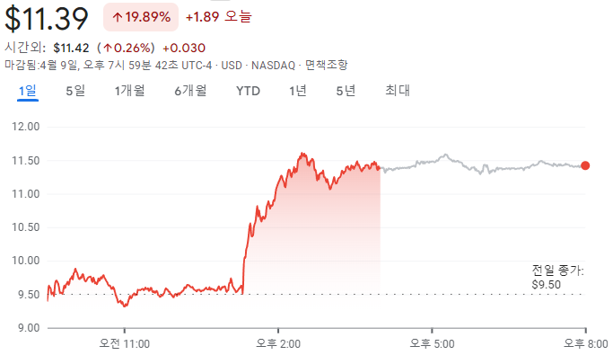 소파이는 전일 대비 19.89% 상승한 11.39 달러에 거래를 마쳤습니다.