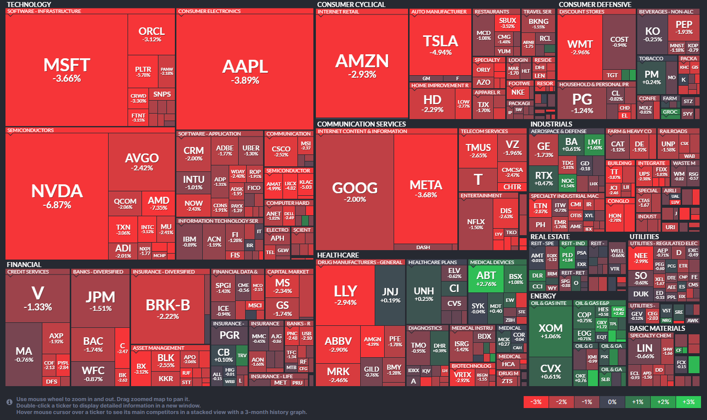 다우존스는 1.73% 하락한 36,669.39에 마감하였고, S&P 500 지수는 2.24% 하락한 5,275.70에 마감했습니다. 나스닥 종합지수도 3.07% 하락한 16,307.16에 마감했습니다. 이번 하락의 중심에는 미중 간 기술 패권을 둘러싼 긴장감이 있었습니다.