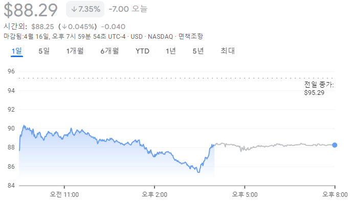 AMD는 4월 17일 기준으로 전일 대비 7.35% 하락한 88.29달러에 거래를 마쳤습니다.