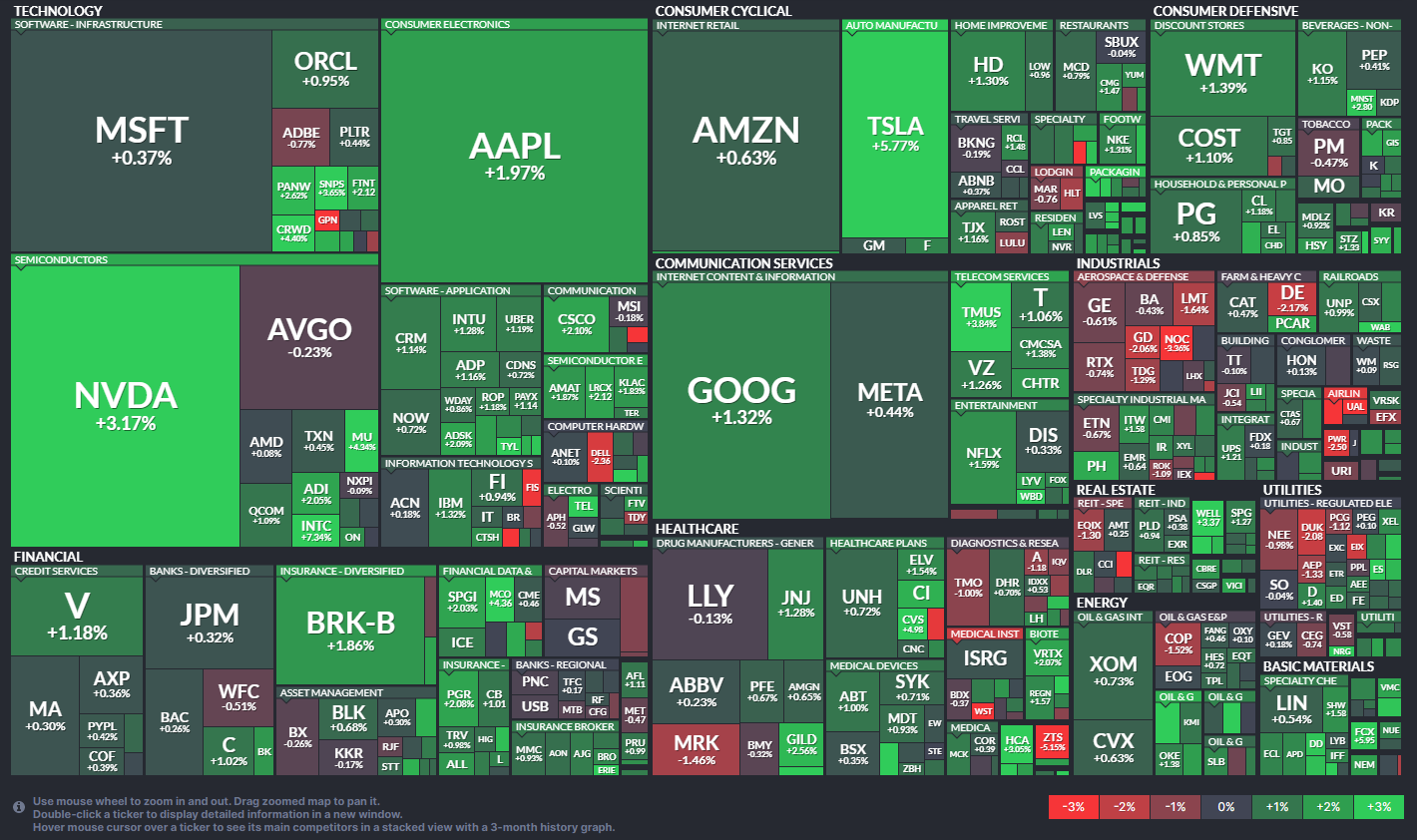 특히 테슬라와 엔비디아가 각각 3% 이상 상승하며 선두에 나섰습니다.