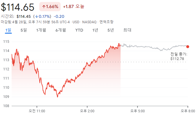 팔란티어는 4월 29일 기준으로 전일 대비 1.66% 상승한 114.65달러에 거래를 마쳤습니다.