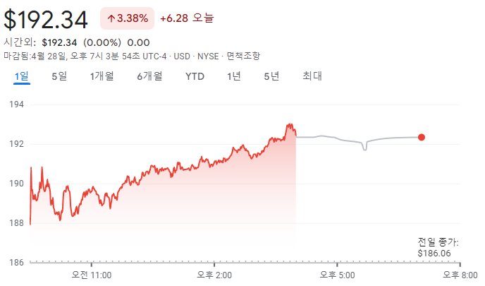 애브비는 4월 29일 기준으로 전일 대비 3.38% 상승한 192.34달러에 거래를 마치며 시장 평균을 크게 웃돌았습니다.