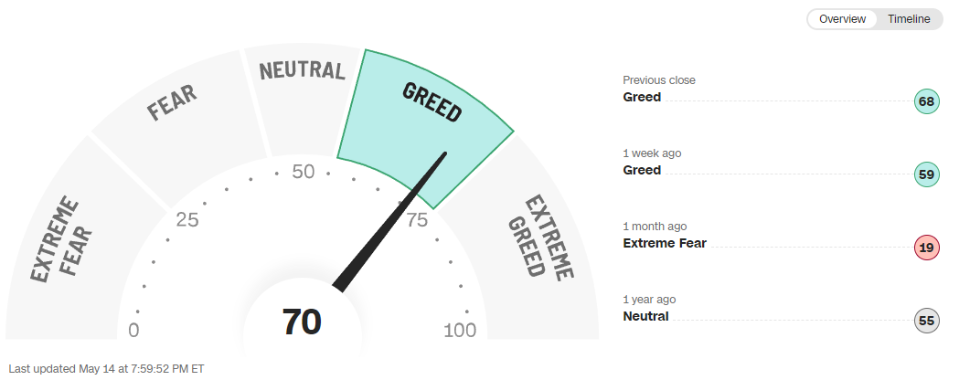 트럼프 대통령의 사우디 방문을 통한 대규모 계약 체결, 중미 간 관세 완화, 인플레이션 둔화 조짐은 단기적으로 투자심리를 크게 개선시켰어요. 그러나 향후 발표될 연준의 금리 정책, 1분기 기업 실적, 경기 지표 결과에 따라 시장의 방향성이 다시 결정될 가능성이 큽니다. 특히 섹터별 차별화가 두드러지고 있어 AI, 반도체, 방산 등 펀더멘털이 탄탄한 종목 중심의 선별적 투자 전략이 더욱 중요해졌습니다. 또한, Fear & Greed Index가 70(탐욕)으로 진입한 만큼 단기적 조정 가능성도 염두에 둔 분산 접근이 필요합니다.