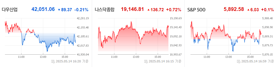 안녕하세요, 2025년 5월 14일 기준으로 미국 주식 시장 현황에 대해 알아보겠습니다.