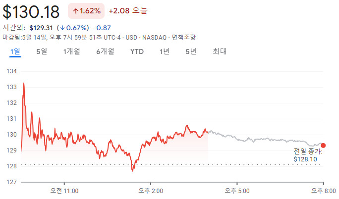 팔란티어는 5월 14일 종가 기준 130.18달러로 마감하며 전일 대비 1.62% 상승했습니다. 정부 계약에 이어 민간 기업들의 AI 플랫폼 수요가 증가하며 주가 상승을 견인하고 있어 장기적인 성장 기대가 높아지고 있습니다.