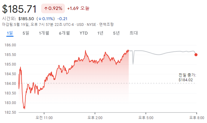 애브비는 $185.71로 마감하며 0.92% 상승했습니다.